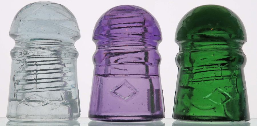 Insulators as follows -- actual postage additional CD 102 bar / diamond // bar / diamond -- off clear with some milk swirls -- just a couple small pecks -- $18 CD 102 large diamond -- great purple -- no issues -- $45 CD 102 diamond -- emerald - peck and a tiny wire rub -- $25 NOTE: I'm selling these insulators on behalf of the Jim Fielding estate -- PayPal (no fee friends and family) or checks are both accepted - I'll provide instructions. I'll also be handling all the packing and mailing. |