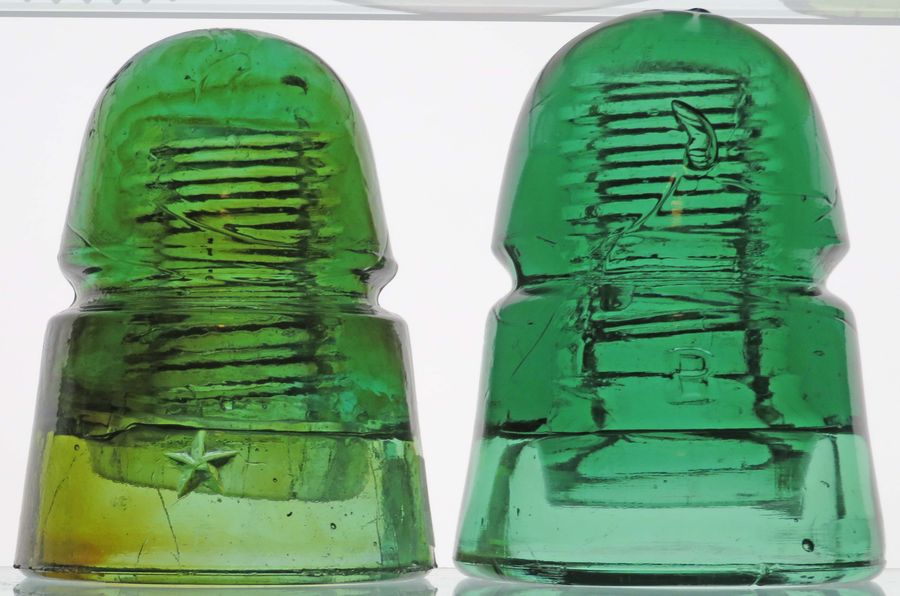 Insulators as follows -- actual postage additional CD 145 STAR in a fantastic two tone amber // green!!! condition is nice as well -- $65 (SOLD) CD 145 B (dome) looks like an 8 over a 3 maybe -- nice green -- no issues -- $5 (not sold) NOTE: I'm selling these insulators on behalf of the Jim Fielding estate -- PayPal (no fee friends and family) or checks are both accepted - I'll provide instructions. I'll also be handling all the packing and mailing. |