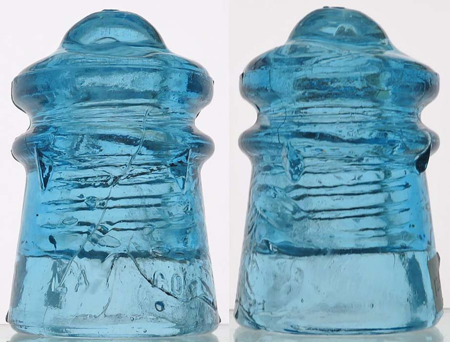 CD 106.1 GLASS CO // "dot" (dome) 6 -- I can see no sign of DUQUESNE on the side with the dot. It is possible that it just never got pressed -- bonus points for a great cornflower shade and nice condition -- $200 plus actual postage NOTE: I'm selling these insulators on behalf of the Jim Fielding estate -- PayPal (no fee friends and family) or checks are both accepted - I'll provide instructions. I'll also be handling all the packing and mailing. |