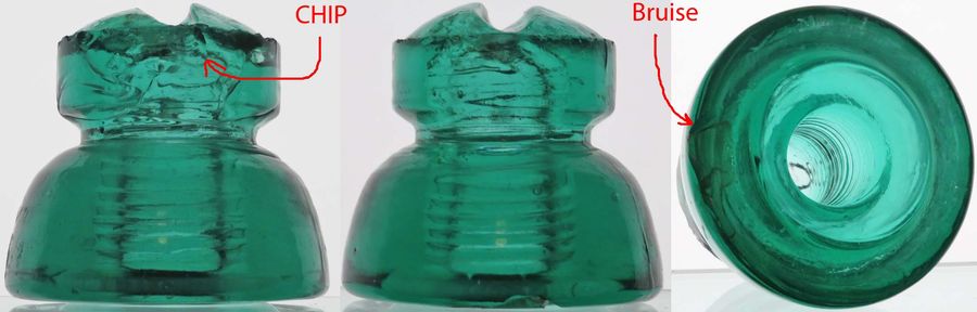 CD 607.7 no markings -- very cool and crude Russian cable top insulator -- small flat chip at the wire groove edge and a base bruise (see pics) -- super crude where the wire groove almost forms an S -- $95 plus actual postage.