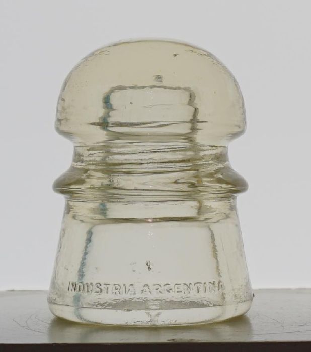 Straw CD 106.6. Embossed "Industria Argentina". Hard to see in the picture, but it is also embossed "C.R." above those words. Mint except for a tiny thing at the base of the inner skirt; either an open bubble or a small flake. It's hard to tell what it is, even with a magnifying glass. The weird thing you see in the dome is a reflection of a small piece of junk in the glass. $35.00 plus actual shipping. Returns OK at buyer's expense. |