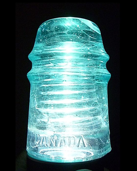 CD 121 B.T.C. blot / CANADA toll line insulator Front skirt: ['B.T.C.' blotted out] / CANADA Smooth base Light aqua with fine milky swirls. Nice amount of dome glass As close to mint as you will find. Milk swirls show up great when base lit. $30.00 + shipping Stock #a2105 |