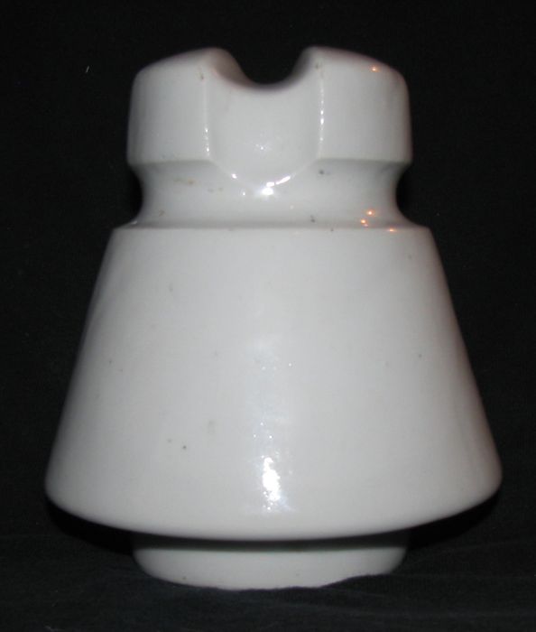 Here's a rare unlisted (only one known) porcelain insulator from France. Has 3 widely spaced pinhole rings, indicating transition phase from threadless to threaded era. Not in any of the WorldWide Porcelain Insulator books nor NIA website. Unmarked. Measures 4 3/4" wide x 5" tall. Looks mint to me. First email gets this rare and unusual porcelain insulator for only $225 plus shipping. Thanks! |