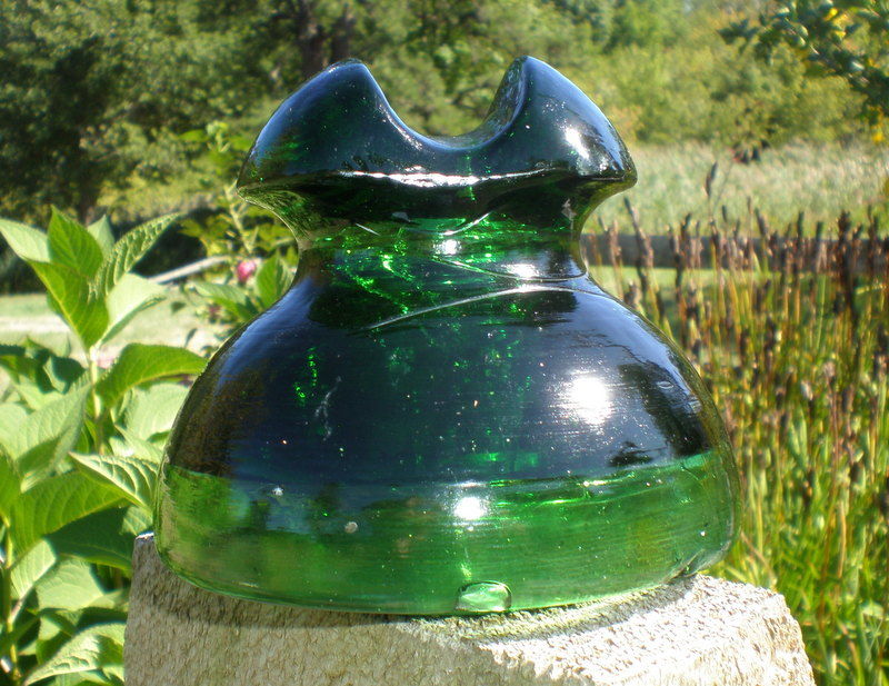 This beautiful yellow-green CD 296 is unembossed and not listed in the price guide in this color. Eyes better than mine have inspected this piece looking for any sign of weak embossing. The verdict is that it is in fact unembossed. The condition is really great for an insulator this size. There is a 1" sliver associated with a small open bubble along the base, otherwise I see no other issues. My Black Friday Special price is $145.00 (considerably less than when I first posted this piece) + actual shipping to your US address. PayPal, friend mode, or check. Add a piece to your collection that the big boys don't have!!! |