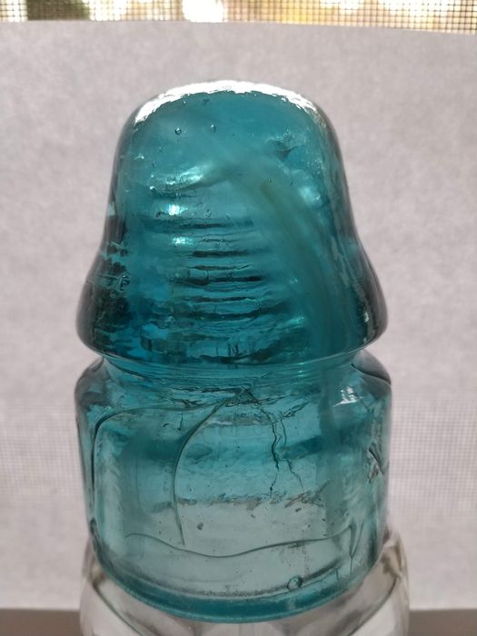 Nice Canadian slope shoulder. Blue aqua with a nice amount of milk, and a bubbly graphite swirl in the dome. VVNM with just a dome surface annealing line, which is common in these old telegraph pieces. $110.00 shipped in the USA. PayPal friends mode of pay preferred. |