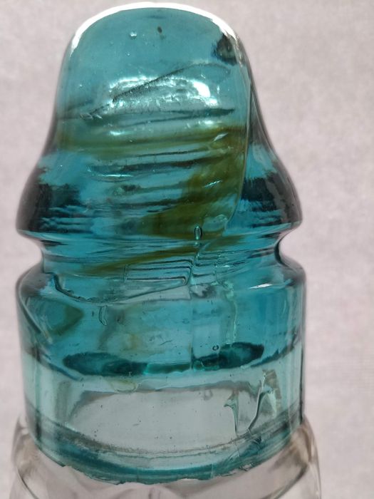 Another nice Canadian slope shoulder. This one has a super nice milky olive swirl that comes up out of the skirt and loops around the threads. Also has a nice halo on the top, and a bubble that looks like an eye. Lots of character in this old timer. VNM with just a little roughness on the base edge, with one small flake. $145.00 shipped. PayPal friends mode preferred. |