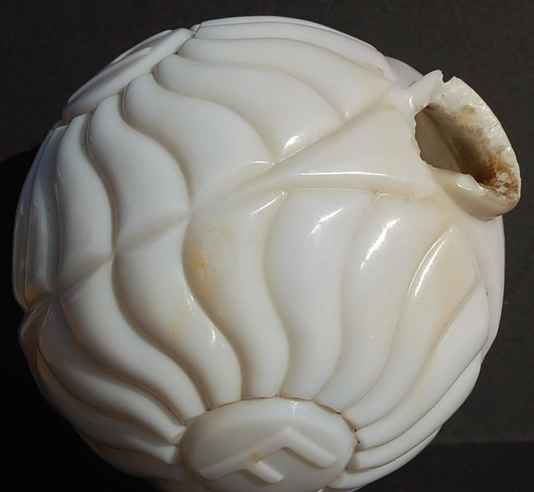 White Milk glass RHF Lightning rod ball This sometimes called a 3 faced White Milk Glass lightning rod ball is boldly embossed R H F which is the initials of the REYBURN HUNTER FOY company, circa about 1910. Both Collars are chipped as pictured, the exterior has traces of rust and stains due to years of exposure to the elements and the interior could use a good cleaning. Other than the collars no other damage. The photograph is part of the description. Picture taken outdoors. Buy with confidence! I ship USPS Priority Mail, with the buyer paying the actual shipping...Payment may be made by Pay- Pal or other forms. Just picked this up this past weekend. $25.00 plus postage |