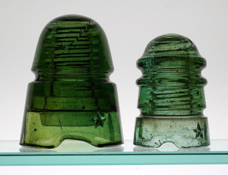 The olive green hive looks mint, the junky lime green 113 has about a 3/8" thin base flake. $35 for the pair plus shipping.