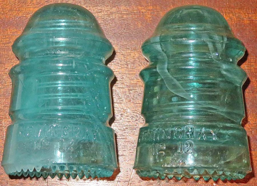 Insulators as follows -- $40 plus actual postage for the pair!! CD 113 HEMINGRAY / No 12 // PATENT / MAY 2 1893 -- great heavy milk swirling -- awesome condition with just one drip chipped CD 113 HEMINGRAY / No 12 // PATENT / MAY 2 1893 -- nice pronounced milk stringers and a big bubble on back -- one chipped drip and a small skirt flake under the "12" NOTE: I'm selling these insulators on behalf of the Jim Fielding estate -- PayPal (no fee friends and family) or checks are both accepted - I'll provide instructions. I'll also be handling all the packing and mailing. |