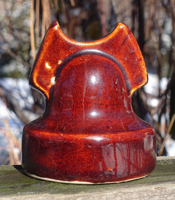 Very nice U-377 made by Pittsburg. This is the smallest of the Roman helmet styles. Beautiful, rich reddish-brown glaze! Has one small flake off the top corner of one ear (opposite side), otherwise perfect. $15 plus shipping.