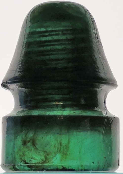 CD 134 No embossing -- Pennycuick style -- awesome dark tealy green with translucence and nice amber stringers -- just a flat chip under the wore groove (see left side photo) and a couple tiny pecks -- $450 plus actual postage. NOTE: I'm selling these insulators on behalf of the Jim Fielding estate -- PayPal (no fee friends and family) or checks are both accepted - I'll provide instructions. I'll also be handling all the packing and mailing. |