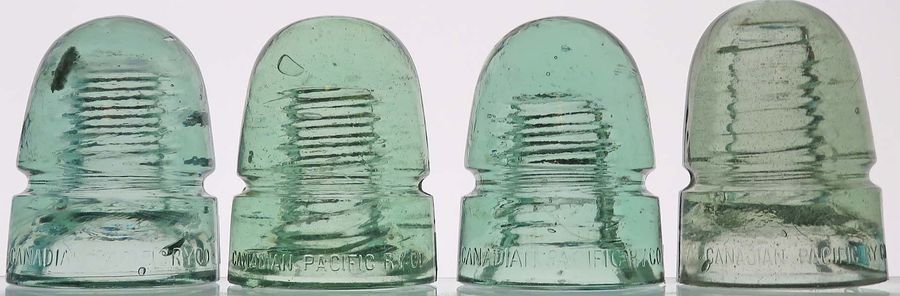 Insulators as follows - take all four for $28 plus actual postage CD 143 CANADIAN PACIFIC RY CO -- great rock in the front dome! two small flat base chips on the back CD 143 CANADIAN PACIFIC RY CO -- big dome glass! tiny rough area on the back lower ridge CD 143 CANADIAN PACIFIC RY CO -- huge dome glass! couple tiny pecks CD 143 CANADIAN PACIFIC RY CO -- tall style, big bubble on back base chip and small base flake on back, odd manufacturing flaw in back wire groove NOTE: I'm selling these insulators on behalf of the Jim Fielding estate -- PayPal (no fee friends and family) or checks are both accepted - I'll provide instructions. I'll also be handling all the packing and mailing. |