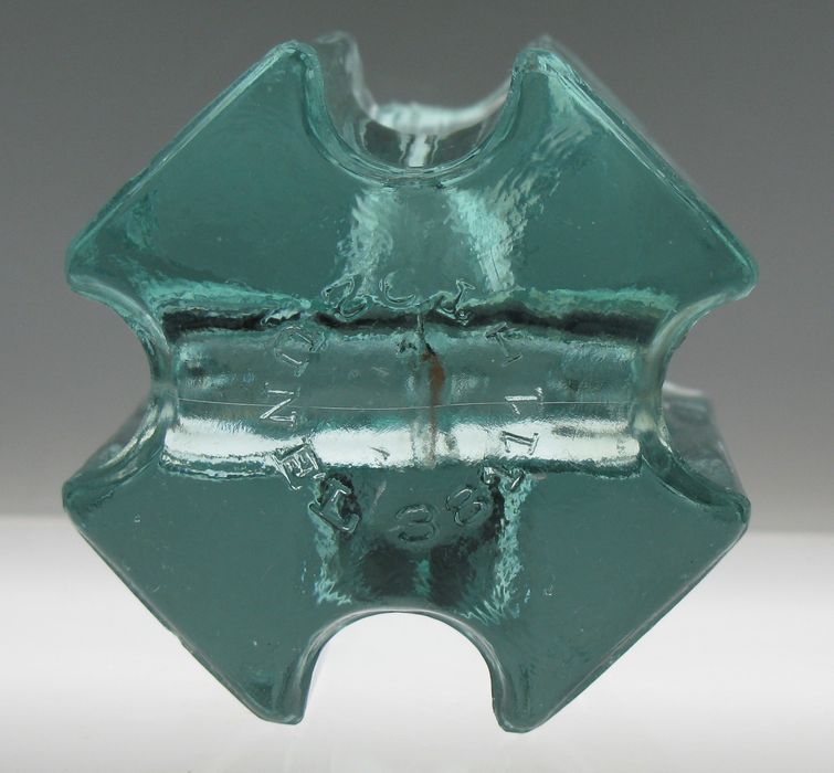 Here's a hard to find Iron Cross shaped Glass Compression Strain insulator from Italy. Embossed T92 UNEL 38111. This Aqua color is much harder to find than the more commonly seen Light Yellow. This one has several chips, a slice and a peck but displays nicely. First email gets it for only $50 plus shipping. Thanks |