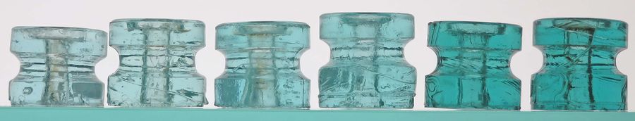 I believe these all are CD 1104.1 -- actual postage additional note all have the factory flaking around the top of the pinhole. CD 1104.1 - no markings - light aqua -- three flat clean chips up from the base & a little nibbling at the sharp ridge -- $10 CD 1104.1 - no markings - light aqua -- a little nibbling at the base ridge -- $15 CD 1104.1 - no markings - light blue aqua -- flat top bruise & a little nibbling at the base ridge -- $12 CD 1104.1 - no markings (super tall version!!) - light blue aqua -- flat base chip and light chipping at the sharp base edge -- $35 CD 1104.1 - no markings - aqua -- flat top flake & a little nibbling at the base ridge -- $15 CD 1104.1 - no markings - aqua -- flat top flake -- $15 NOTE: I'm selling these insulators on behalf of the Jim Fielding estate -- PayPal (no fee friends and family) or checks are both accepted - I'll provide instructions. I'll also be handling all the packing and mailing. |