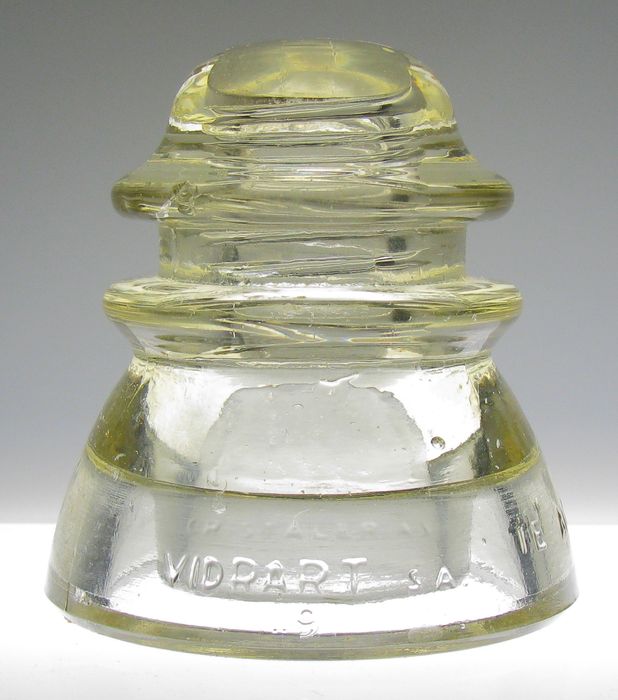 Here's an uncommon CD 154 Vidrart S.A. (front) in Straw with the OTALOGO AR114 Industria Argentina embossing (reverse). Has upper wiregroove peck with small crack, small rough spot and a few tiny tic marks. First email gets this for only $30 shipped. Thanks! |