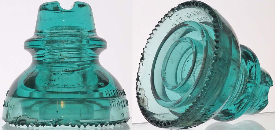 CD 291 HEMINGRAY / PATENT MAY 2 1893 // HIGH VOLTAGE No 3 / TRIPLE PETTICOAT -- SDP -- bb ding on the dome and chipping around the base as shown in the photos [id=622214396]. Inner skirts nice! $450 plus actual postage. NOTE: I'm selling these insulators on behalf of the Jim Fielding estate -- PayPal (no fee friends and family) or checks are both accepted - I'll provide instructions. I'll also be handling all the packing and mailing. |