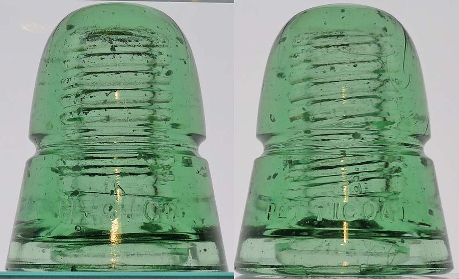 CD 145 H.G.CO. // PETTICOAT (dome) H -- awesome green with lots of large white "snow" bits distributed throughout! nice condition -- $95 plus actual postage NOTE: I'm selling these insulators on behalf of the Jim Fielding estate -- PayPal (no fee friends and family) or checks are both accepted - I'll provide instructions. I'll also be handling all the packing and mailing. |