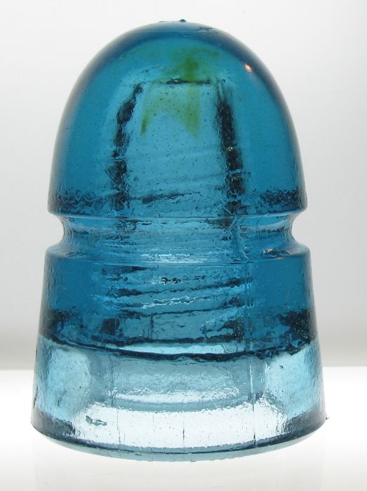 Here's a blue CD 145 base embossed: AM. Insulator Co. N.Y. Double Petticoat PAT'D SEPT.13.1881. NOV.13.1883. "V" on dome. What makes this beehive special is the large amber glob in the dome! Never seen another. Has large inner skirt chip [id=622583420], 4 small nicks, bb ping and small dome wire rub mark otherwise excellent condition. Small lehr kiss on skirt. Has a ton of tiny microbubbles throughout that sparkle in the sunlight. First email gets this must have color variant for the American insulators specialist for only $60 plus 9.55 shipping. Thanks! |