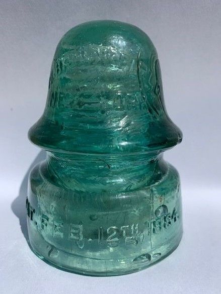 W. Brookfield/New York on dome. Feb. 12th,1885 on front skirt. Has an underpour on left side for character. Tiny chip on wire ridge, but base and inner skirt are good. Hope I look this good when I am 137 years old. Asking $15 + $10 shipping. PayPal preferred. |