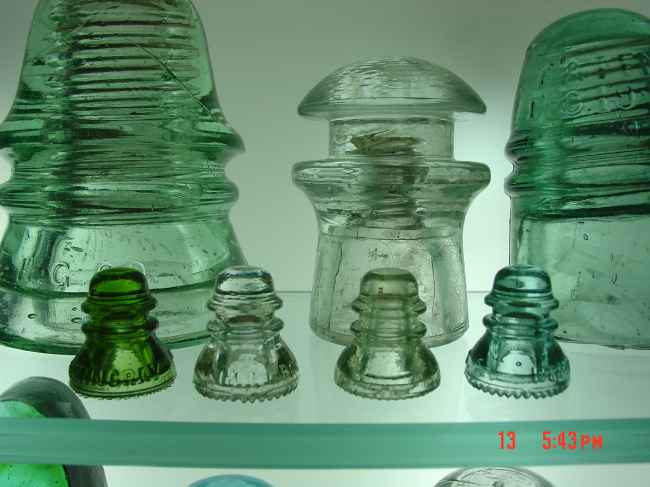 Some of the Hemingray Miniatures. The aqua and clear one are original. It is uncertain if the other two are original or not.