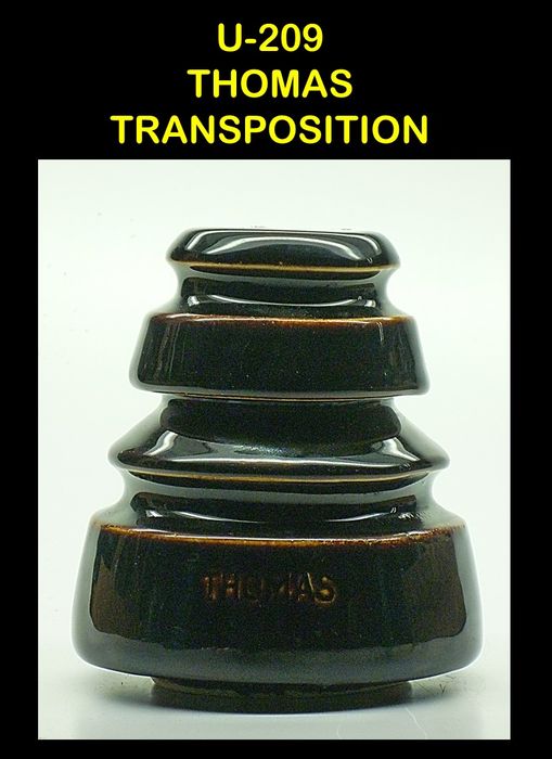 U-209 THOMAS transposition insulator. Nice dark brown glaze. No defects that I can find.