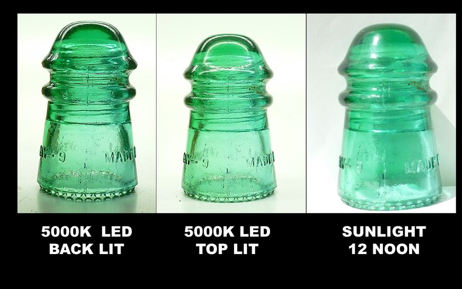CD 106 HEMINGRAY - 9 // MADE IN U.S.A. [120] Round drip points all intact. Two tone green / aqua. The green portion is in the front with the aqua in the back. Photographed 5000k back lit, 5000k top lit. and outdoors in sunlight at noon. Subtle shades and definitely a neat two tone. One tiny pin prick on dome. Otherwise Vvnm condition. $75.00 + shipping Stock #a2422 |