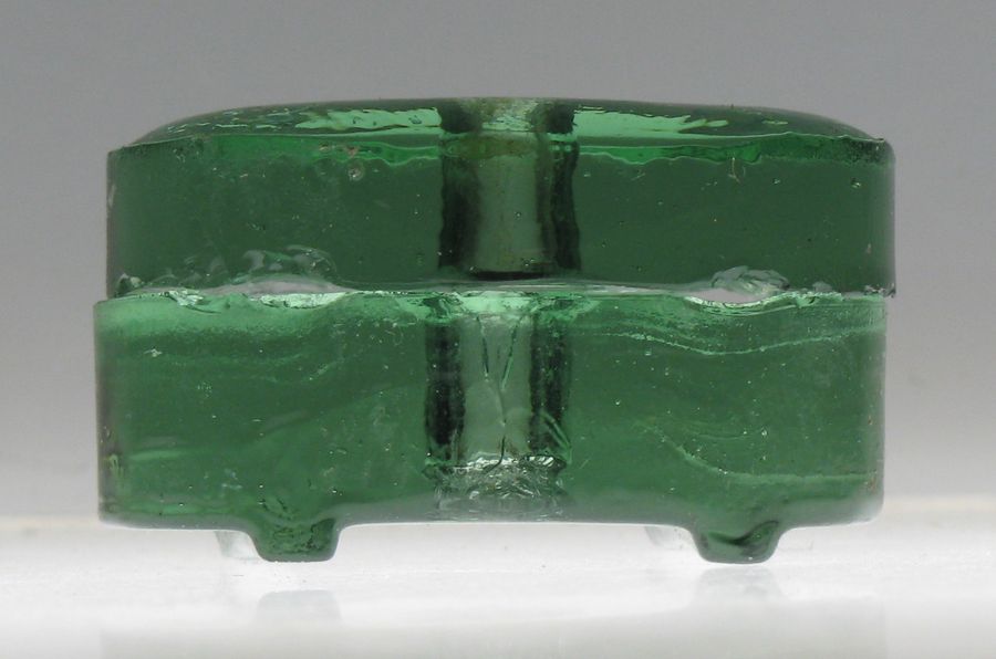 Here's a cool Green glass cleat from France. Both pieces are embossed "FOL." Small gauge wires were insulated using these small insulators in attics and for early door bells. Measures 1 1/2" long x 3/4" wide. This one is in amazing condition as they are usually heavily chipped. This one only has tiny nibbles around the exterior. No cracks! First email gets this cool and rarely offered insulator for the reduced price of only $100 shipped. Thanks! |