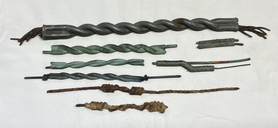 Here's a grouping of splices I've had in the shed for what is probably a couple decades by now. Just in case someone here in ICON land is interested, I thought I'd offer them up. The largest measures 11" in length and originated from a power line in Northern Ontario. Its conductor is iron, which is a bit odd for a power line I'd say. It could have been used on a guy wire somehow. There is a heavier gauges power example from the London Hydro secondaries put up in the 1910s and 20s, and the rest are all telegraph - a mix of Great North Western/Western Union and Canadian Pacific probably. The iron examples are very early - one of them originated from a threadless era telegraph pole and is likely a Montreal Telegraph or very very early Great North Western Telegraph example. I'm asking $30 USD plus shipping for the collection. I'm always happy to trade for early Canadian glass or Canadian-made porcelain insulators. I accept PayPal, or personal cheque from any member of ICON or any collector with whom I have dealt before. Please feel free to contact me with any questions or for more photos, and look through my other items or unsold sales stock to combine shipping on items. |