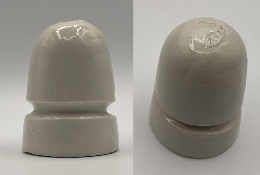 Here's another crude Pittsburgh High Voltage-made Canadian beehive. This one is a U-1131 with a bolt C.N.R. stamp within a rectangle on the dome top. As usual, this one has some real crude attributes, like an imprint about 1/2" wide on the dome top, and a crooked wire groove. This example appears to be in just about mint condition apart from a few rusty wire groove scuffs. I'm asking $10 USD plus shipping for this one. I'm always happy to trade for early Canadian glass or Canadian-made porcelain insulators. I accept PayPal, or personal cheque from any member of ICON or any collector with whom I have dealt before. Please feel free to contact me with any questions or for more photos, and look through my other items or unsold sales stock to combine shipping on items. |