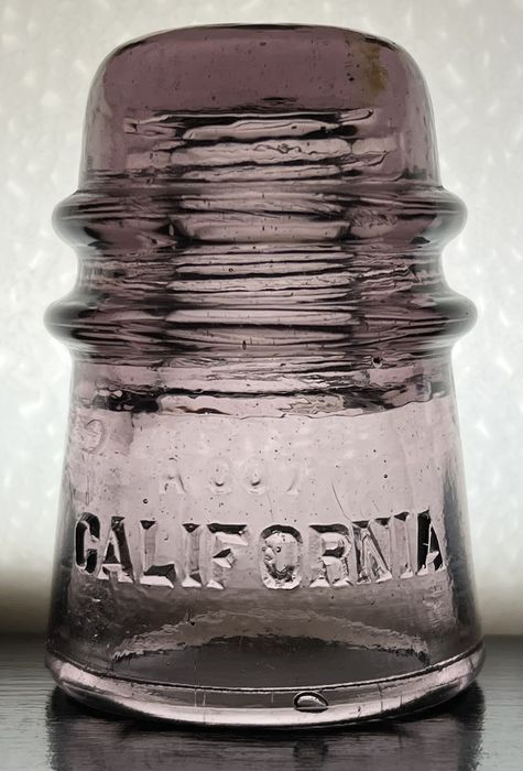 Plum Purple with a small sagey green amber streak in the dome glass.