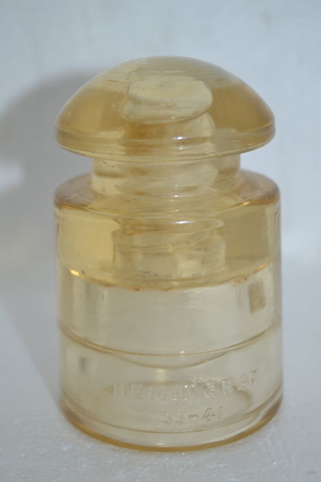 Listed is a nice CD 128 in yellow - Embossed Hemingray on rear skirt C.S.A. - only damage I see is a micro ding on dome. Most of these were taken down by A.L. Rash in the 70's which had two poles crossing over the Trinity River in Texas. I'm asking $45 plus actual shipping. |