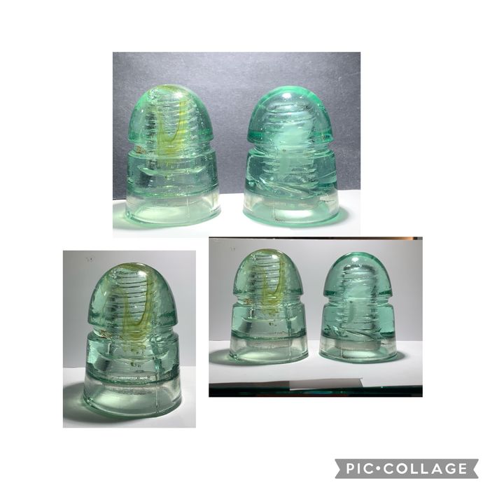 Two harder to find colors of unembossed canadian 145's. The light green example has a large swirl of milk and amber going right over the dome. The lime green example has a large snot ball of milk right in the middle. Light green piece is in excellent shape and asking 175$ shipped, the lime green piece has some minimal base damage so asking 100 shipped. Will do both for 250$ if interested. Email me for base damage photos if needed. Cheques or etransfer accepted. And as always mail goes out Thursday. |