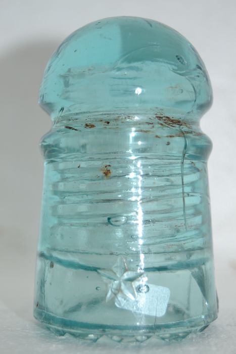 Listed is a CD 102 Star with wedge drips. - Light aqua color - displays perfect but has a crack on left side as shown in second picture. I'm asking $160 plus actual postage. Books up to $250, discounted due to crack. Needs a good acid bath.