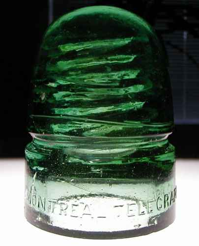 Here is my green CD 143 Montreal piece. Photo taken with insulator sitting on its base on my new light box from Gene Hawkins.
