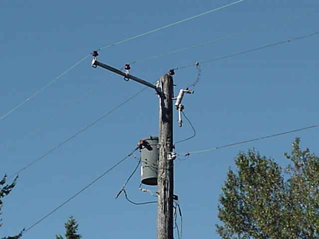This is part of the three phase line that branched off from the corner pole. Note the opened fuse cutout. The customers from this pole have been switched to the new underground service.