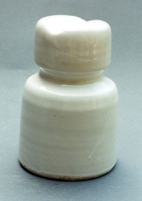 This one is the classic European power insulator with "cylinder" top. This type has been developed in the 1850s in Germany for telegraph use. The item in the photo has no marking but was presumably made by IMEC.