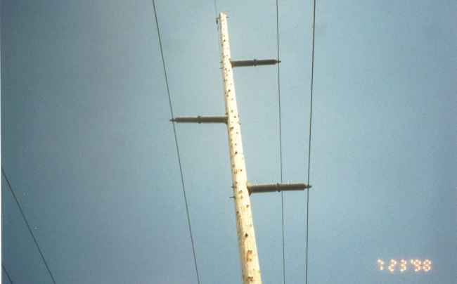 These types of post insulators are common on narrow rights-of-way where appearance is important. I have been trying to get a used one for years, however they are not as easy to find as suspensions. If anyone knows of any that are available drop me an email....Thanks! |