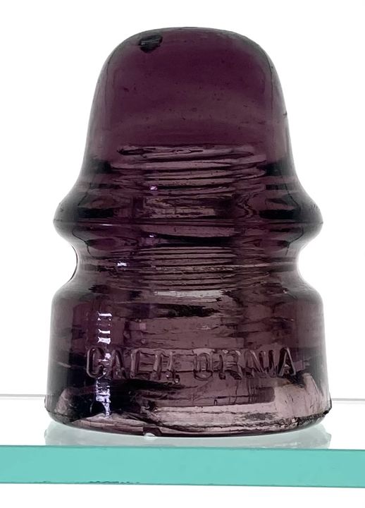 If this one did not have the great stripes of grey across the huge domeglass, it would be a stunner. But it does, making it that much more fantastic. Base color is about as deep of a burgundy purple as California made. In good backlighting, it reveals these great layered stripes of grey. Just an amazing beauty. Straight out of my collection. Damage includes a few picks and pecks from use, a 1.25" ISC, and the skirt bruise you see in the photo. $425, shipped in U.S. |