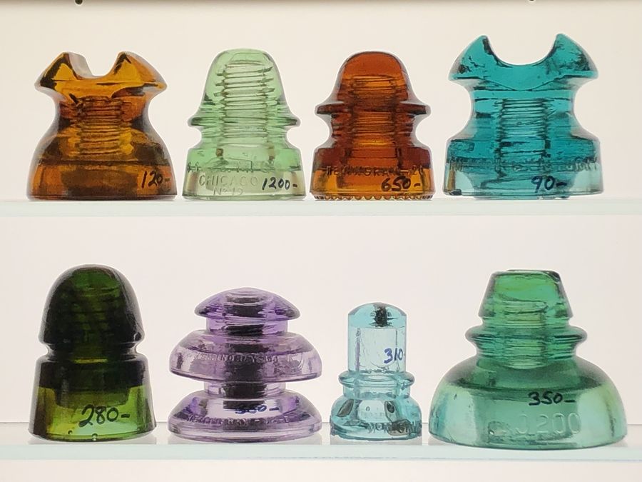 All prices include shipping in the USA. L-R Top Shelf- Cd252 Flashed Yellow Orange Amber - mint $120 pending Cd162 SS&Co Limey Apple Green - small base flake from mint. $1200 Cd164 Hemingray Orange Amber - tiny rough area on inner skirt $650 pending Cd275 FM Locke Deep Aqua two flea dings, base nick, open base bubbles. $90 Bottom: Shelf: Cd145 B Tiger Stripe Amber Green tiny fisheye and wire ridge nick from mint. $280 Cd194/195 Hemingray Purple mint $350 pending Cd734 McMicking Light Aqua w/4 Carbon Bubbles minor base edge roughness $310 Cd245 9200 in Green three flea dings from mint. $350 More pictures available. First email as always. Thank you. |