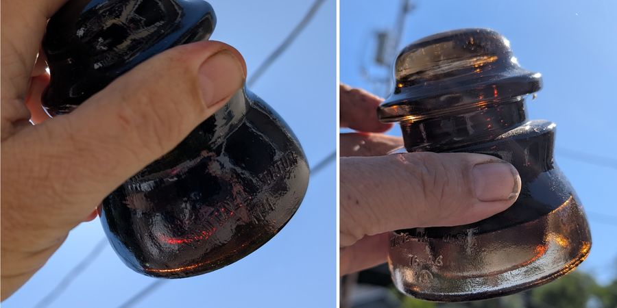 Looked like the right embossing for an orange amber WT 155, but after I did the buy it now, I noticed the seller, one of the SE eBay sellers pumping out a lot of irradiated stuff. At least they disclosed it, I just didn't read it in my excitement. Here's the insulator after being in the sun just TWO WEEKS. |