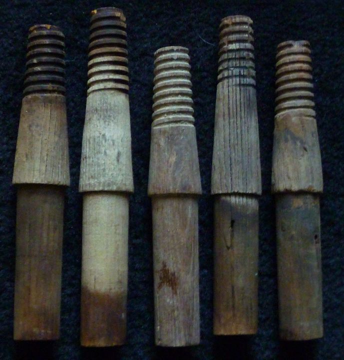 Here is a lot of (5) standard wooden insulator pins. These are the smaller diameter ( 1" ) shank which is most often seen on telegraph and older phone lines. Average length 8" +/-. Used, but nice condition. Ready to be "repurposed" for the collector, crafts person, etc. $12.50 per lot of 5,....... plus shipping |