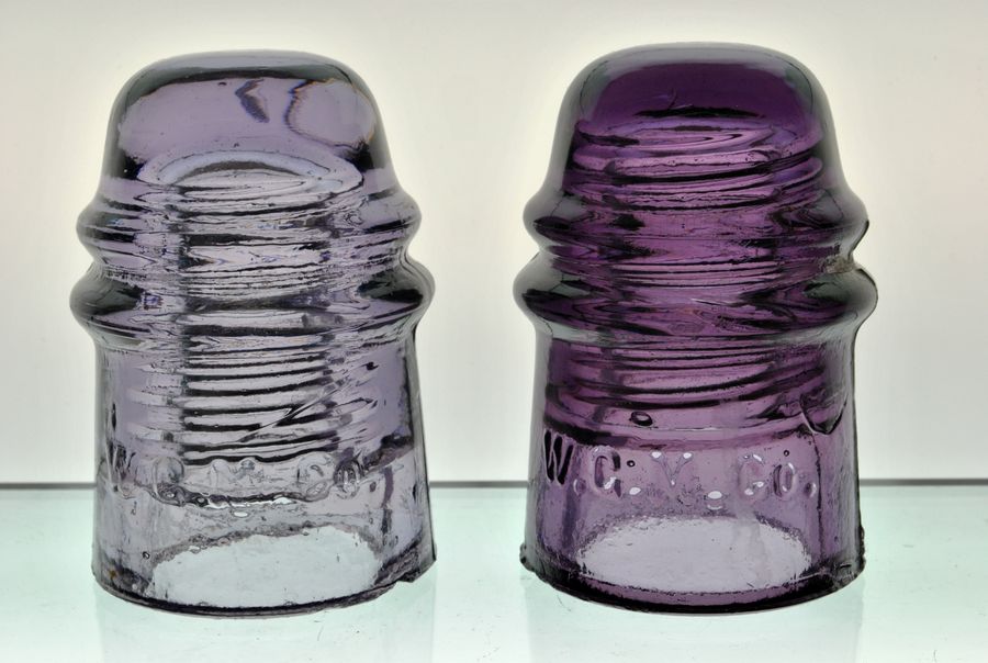 TWO purple WGM toll insulators Lavender and plumb Photo 1 Sold