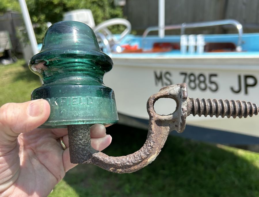 Old weathered pin as pictured with original Brookfield insulator. Asking $20 with actual postage.