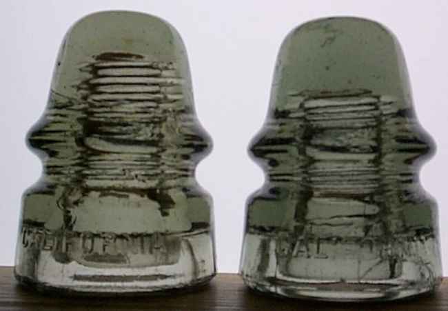 Here are two more hideous Cal colors you won't find in the price guide. The domer on the right I describe as drab army green, while the one on the left is light, drab army green. The left one looks like a twin to the one posted by Bill Ostrander a short awhile ago. To see Bill's example [id=74302683] To go to the next ugly color [id=75772371] |