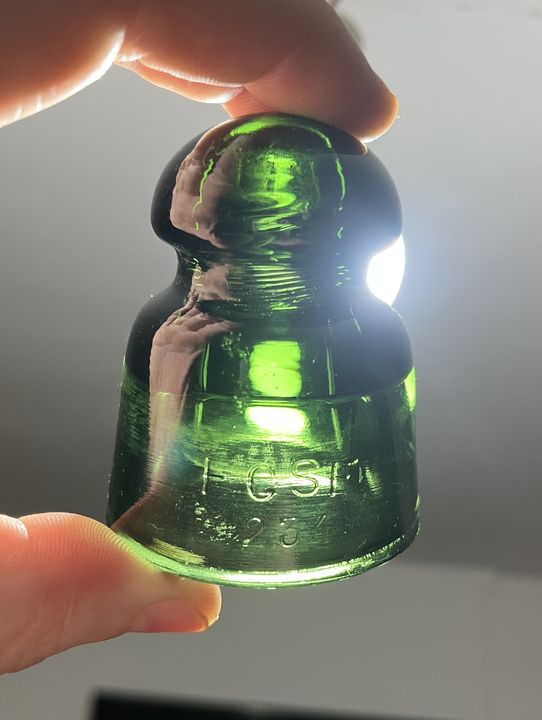 Hi everyone! This is an insulator discover by me in in the wild. There are less than 8 known and for sure this is the second best I got. The condition is NM with some flea bites on the crown but if you need a video I can send it happily. It took the CD number last year and there are 2 known embossings, the one on the pic, FCSF 231 ISOREX and the other one: 231 FCSF ISOREX Dimensions: 2 1/4" X 2 3/4" (56mm X 70mm) (front skirt) ISOREX (rear skirt) FCSF / 231 The FCSF (Ferrocarril the Santa Fe or Santa Fe Railway) was founded in 1885. In 1888 was bought by french capitals, that's why the imported all the supplies from france. This is the smallest of the group follow by the 233 (CD 445), 234 (CD 445.2) and 235 (CD 445.4). Model 232 is still to be found. The price is $250 shipping included to the US. If you add more insulators on the shipping you have to pay the difference. SOLD |