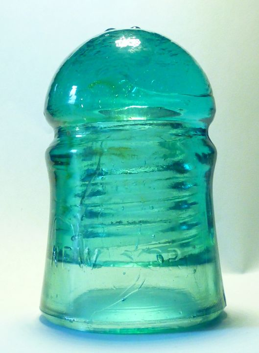 CD 102 BROOKFIELD // NEW YORK pony insulator. Backward " 7 " on top. Smooth base. BGM Co original mold. AQUA glass. Nice amount of dome glass. Very close to mint with no distractions to note.