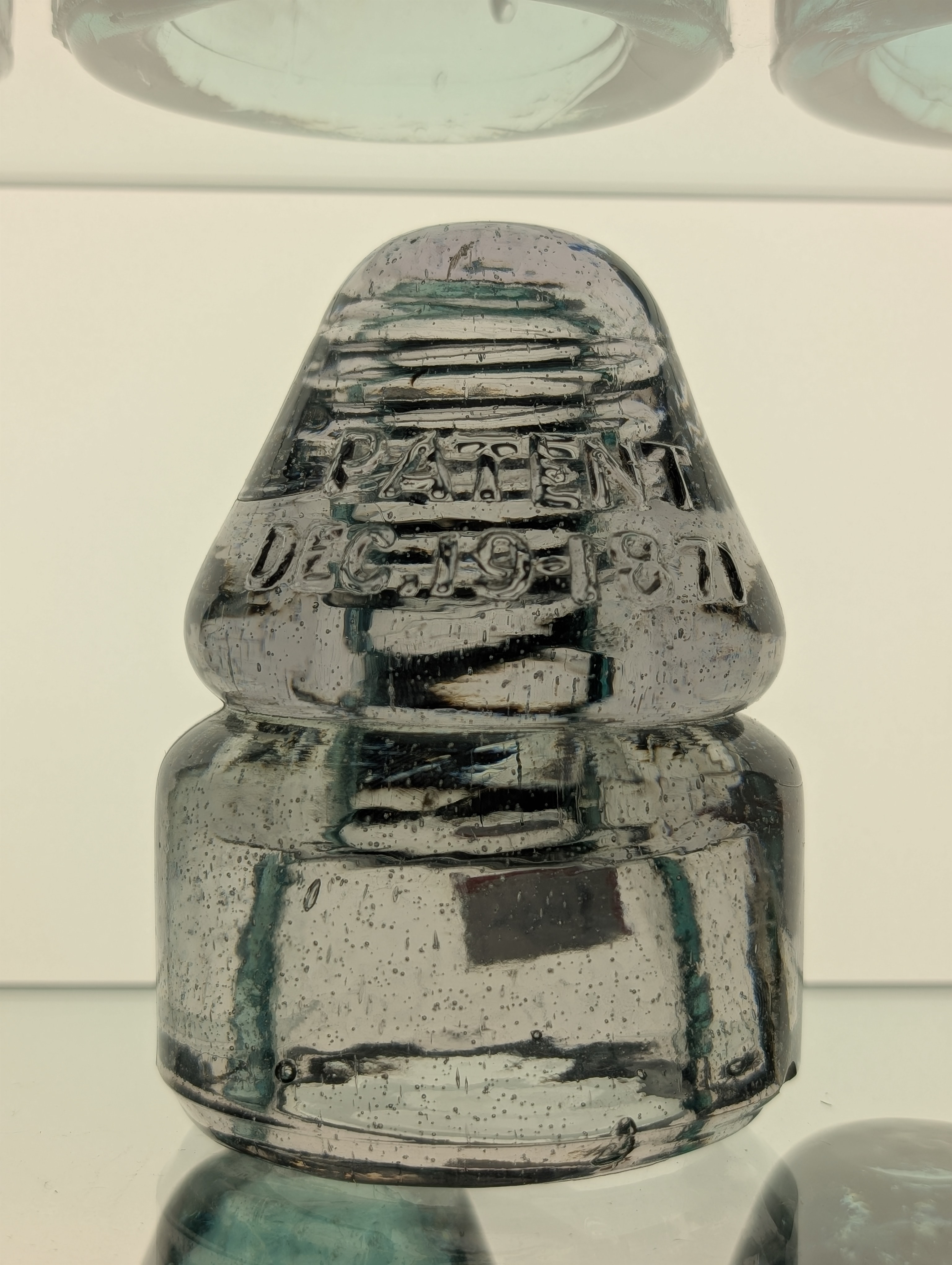Here's a beautiful patent Dec 1871 bullet in a nice light purple with micro bubbles . Great condition one little base flake and a couple factory annealing lines has a great lean to it from a little deformed base. $525 plus shipping on this one.