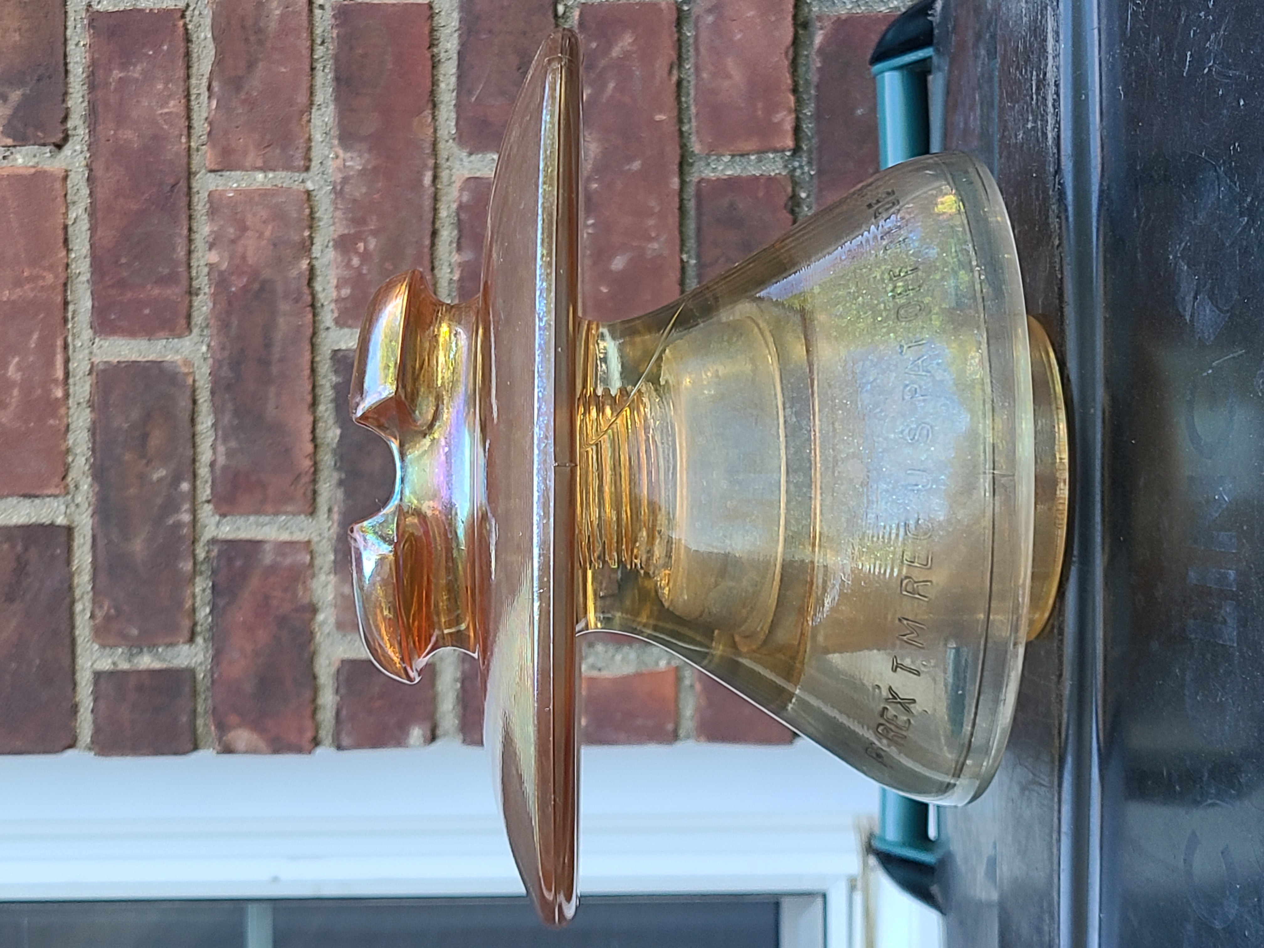 Beautiful power insulator, the carnival color is above average for these. The insulator is in good shape, has a chip at the base of the threads in the pinhole about 1/3 around, this typically happens, might be a high point of pressure from when in service, other than that VNM+. Books $125-150, was $70, now $56 plus shipping or I can bring it to the Richfield Ohio or Springfield show for free. I can send more pictures if needed. |