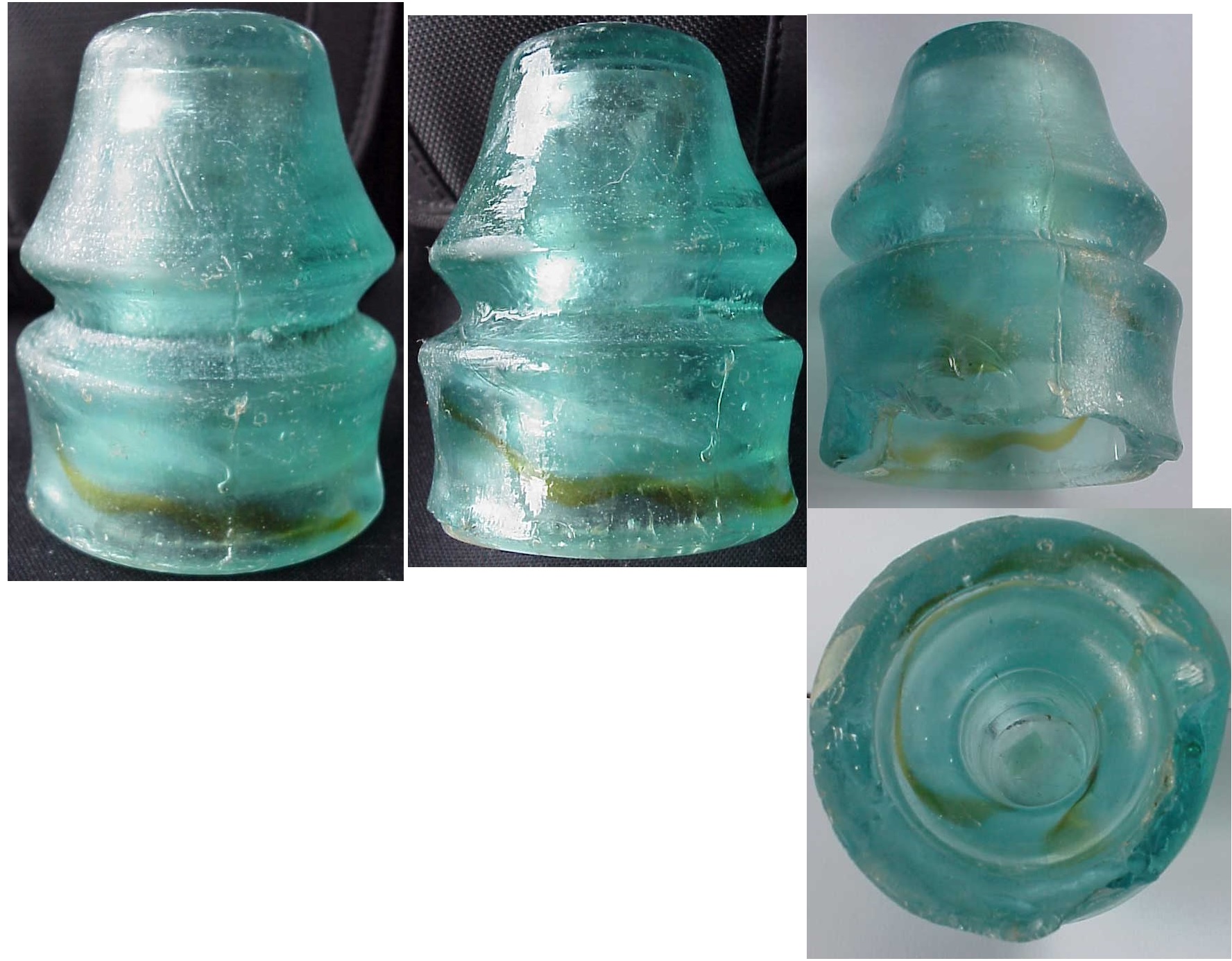 A Lite Blue CD 731 Button Top with a ribbon of amber and a ribbon of white milkglass swirling around the interior insulator. Skirt chipping so ... only $235. + postage.