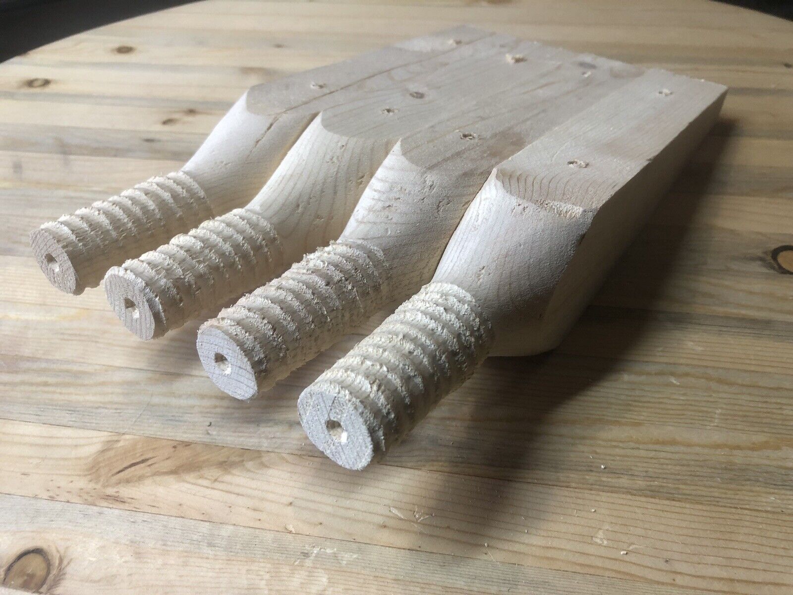 Wooden insulator pins/pegs/mounts, perfect for glass insulator collectors, enthusiasts, or restoration projects. Each pin is crafted from durable wood and designed to fit most standard glass insulators. They are ideal for displays, replacements, or creating rustic decor. Key Details: Length: 11.5 inches Material: Natural wood with threading Condition: Excellent threading; natural wood may include knots, checks, cracks, live edges, bark, dirt, dust, and other inherent features Origin: Made in the USA These posts showcase the beauty and imperfections of natural wood, providing an authentic, rustic appeal. Whether you're a glass insulator collector or a restoration enthusiast, this lot is a great addition to your collection. 4 pk for $50.00 Message me if you are interested! Please include your: Name, Shipping address, and Quantity of pegs in the message! Thanks Ric M |